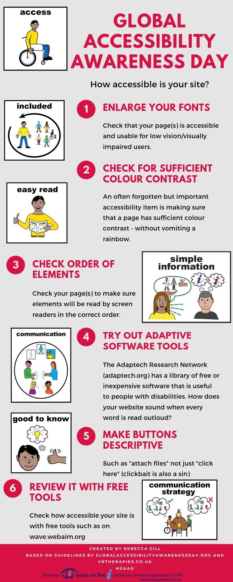 The purpose of GAAD is to get everyone talking, thinking and learning about digital (web, software, mobile, etc.) access/inclusion and people with different disabilities. The internet, it is a wonderful world… allowing people who cannot travel, to visit foreign lands, people who cannot hear, to find subtitles of their favourite foreign films in their language, or people who cannot read anymore to find an audio-book of their childhood favourite story… It’s the little things that can make technology so beautiful. When I took Jo on a VR roller-coaster, I didn’t realise until afterwards what a magical moment it was for her. With severe, cerebral palsy, she’d never been able to ride a roller-coaster.